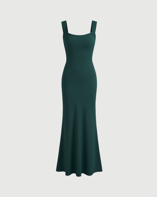 Backless Bowknot Maxi Dress with Scoop Neckline-Dark Green