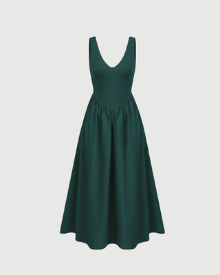 This romantic, bohemian-leaning maxi dress is made from a breathable cotton blend that is perfect for outdoor events. It features whimsical ruffle detailing and a knotted bodice that adds texture and volume to the floor-length silhouette. The combination of the deep V-neck and the tiered skirt creates a free-spirited yet polished vibe that is perfect for tropical vacations or spring festivals.