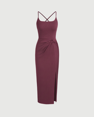 This unique maxi dress centers around an intricate twist and criss-cross detail at the waist, creating a stunning visual "cinch" effect. The deep U-neckline frames the upper body, while the long skirt provides a sophisticated and flowing counterpoint. The architectural wrapping of the fabric adds depth and texture, elevating a simple maxi into a high-design garment. It is an effortless yet impactful choice for summer parties or evening events by the water.