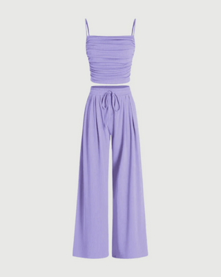 | Set Includes | 1 Ruched Crop Top + 1 Pair Wide-Leg Pants |