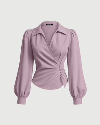 Turn everyday dressing into a style statement with this lavender wrap blouse. Designed with a flattering wrap-front silhouette, subtle pleat detailing, and full-length puffed sleeves, it blends sophistication with comfort. The soft fabric drapes beautifully, while the side knot accentuates your waistline for a chic, feminine look.