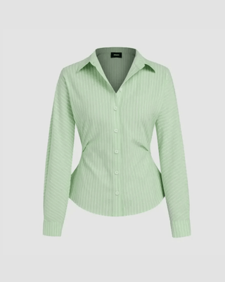 Light Green Striped Shirt – Elegant & Comfortable Women’s Wear