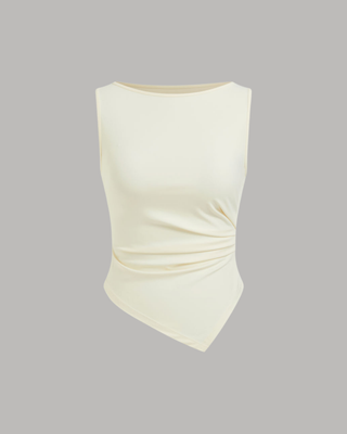 A functional tank top designed with a boat neckline and a solid, athletic cut. The fabric is likely stretchy and supportive, making it suitable for active movement or sleek athleisure styling.