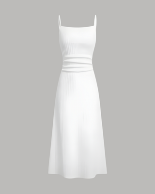 A refined take on the classic slip dress, this midi features a structured square neckline and subtle ruching for a more defined fit. The midi length offers a sophisticated drape that works well for a variety of heights and body types. Its minimalist design makes it an incredibly versatile wardrobe staple that can be dressed up with heels or down with a casual blazer. The square neck adds a modern edge to the timeless, feminine silhouette of the slip dress.